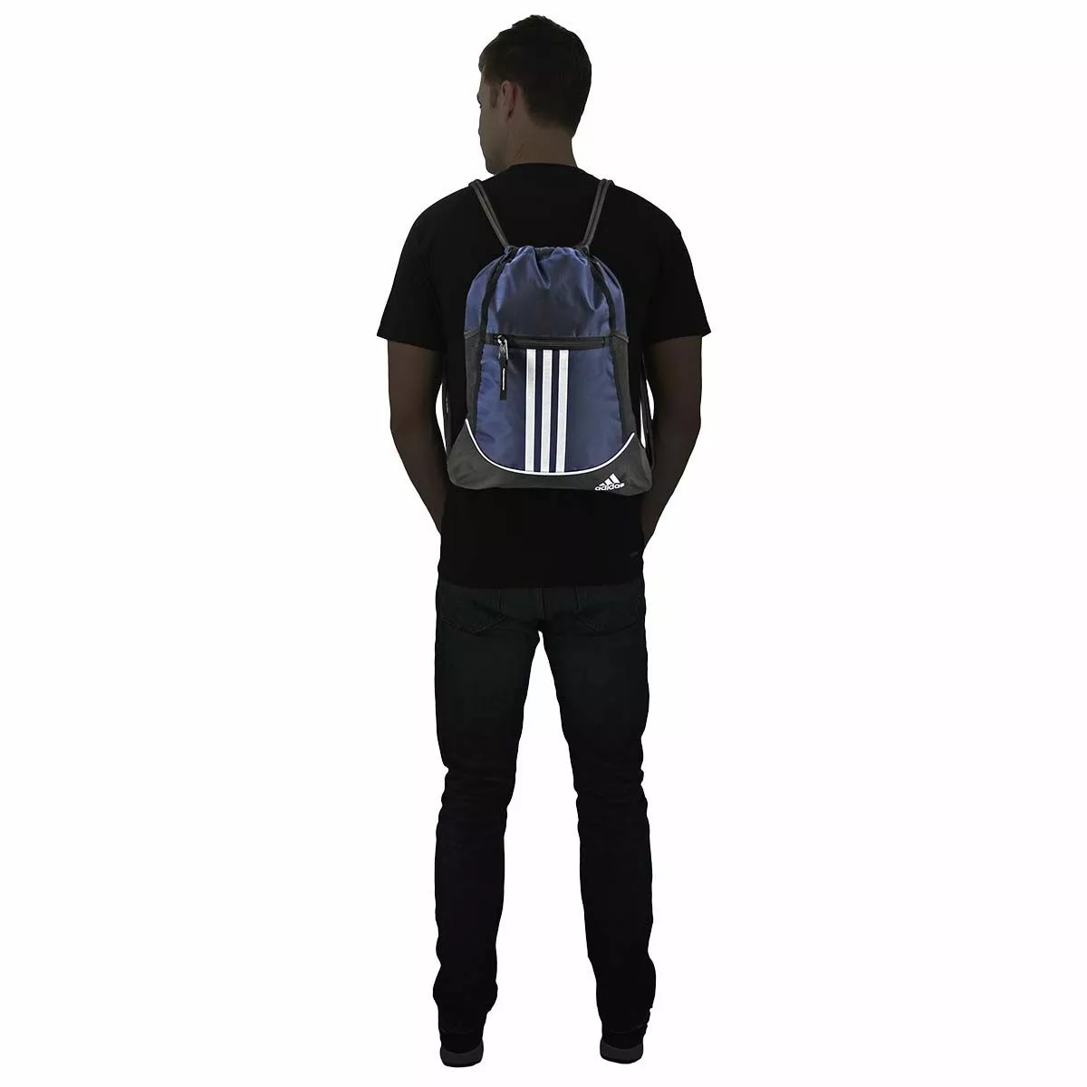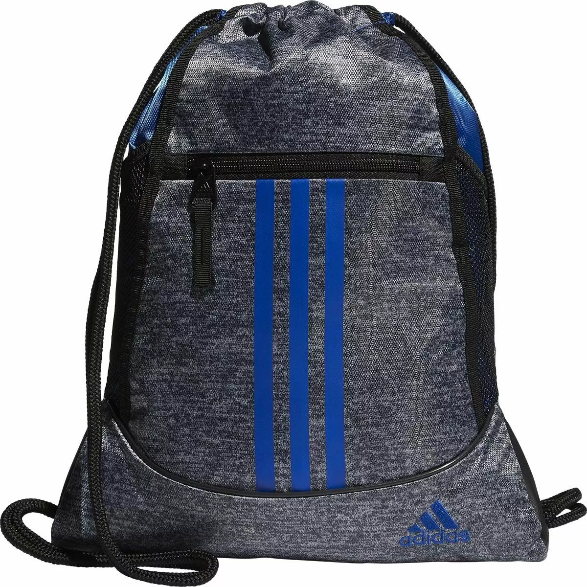 The Adidas Alliance II cinch sackpack is perfect for all athletes. It comes with two water bottle pockets and an outside drop pocket that zips up to hold all your small accessories as well as being a spot to hold your shoes or clothes. It comes with durable cording straps making it easier to carry as you can wear it as a backpack.