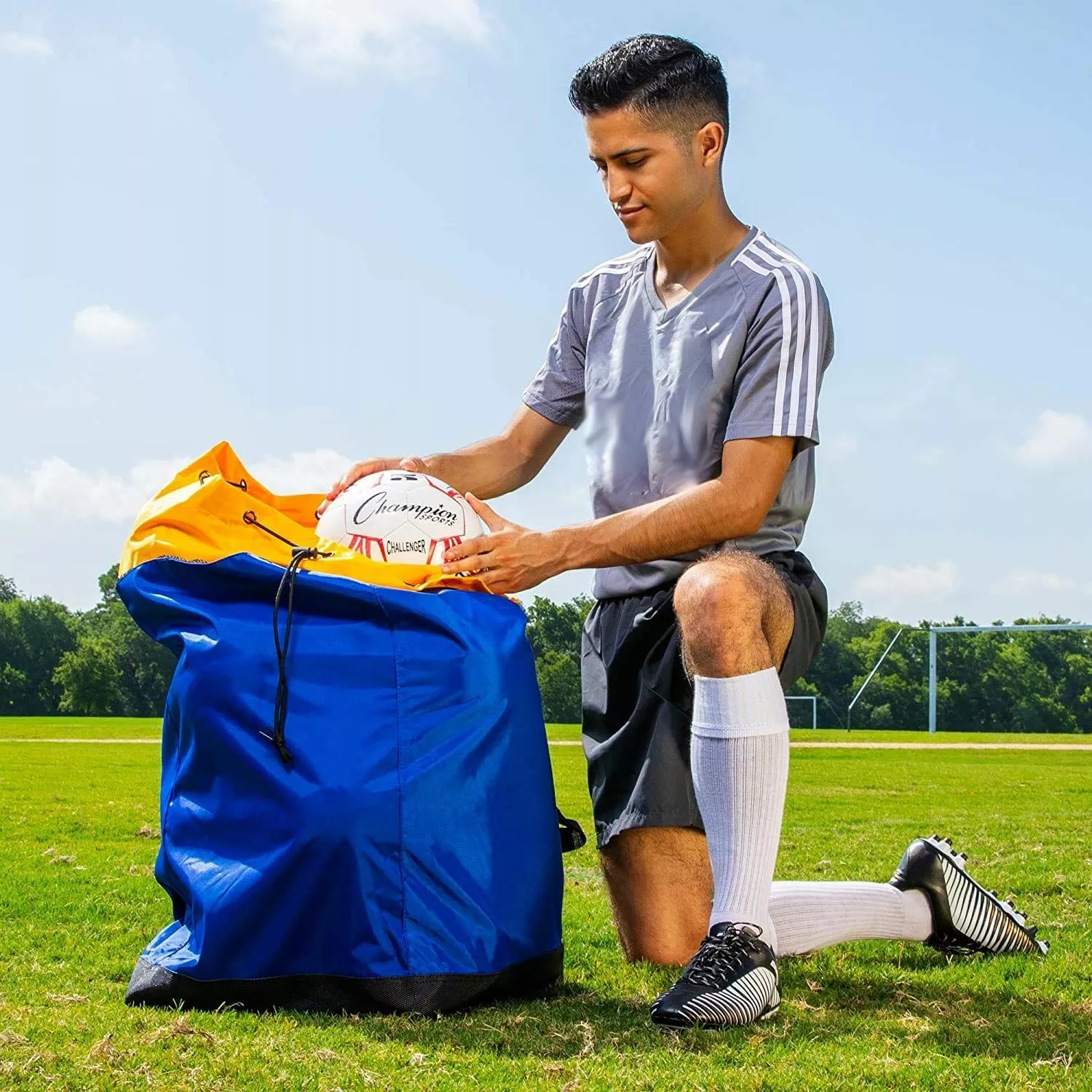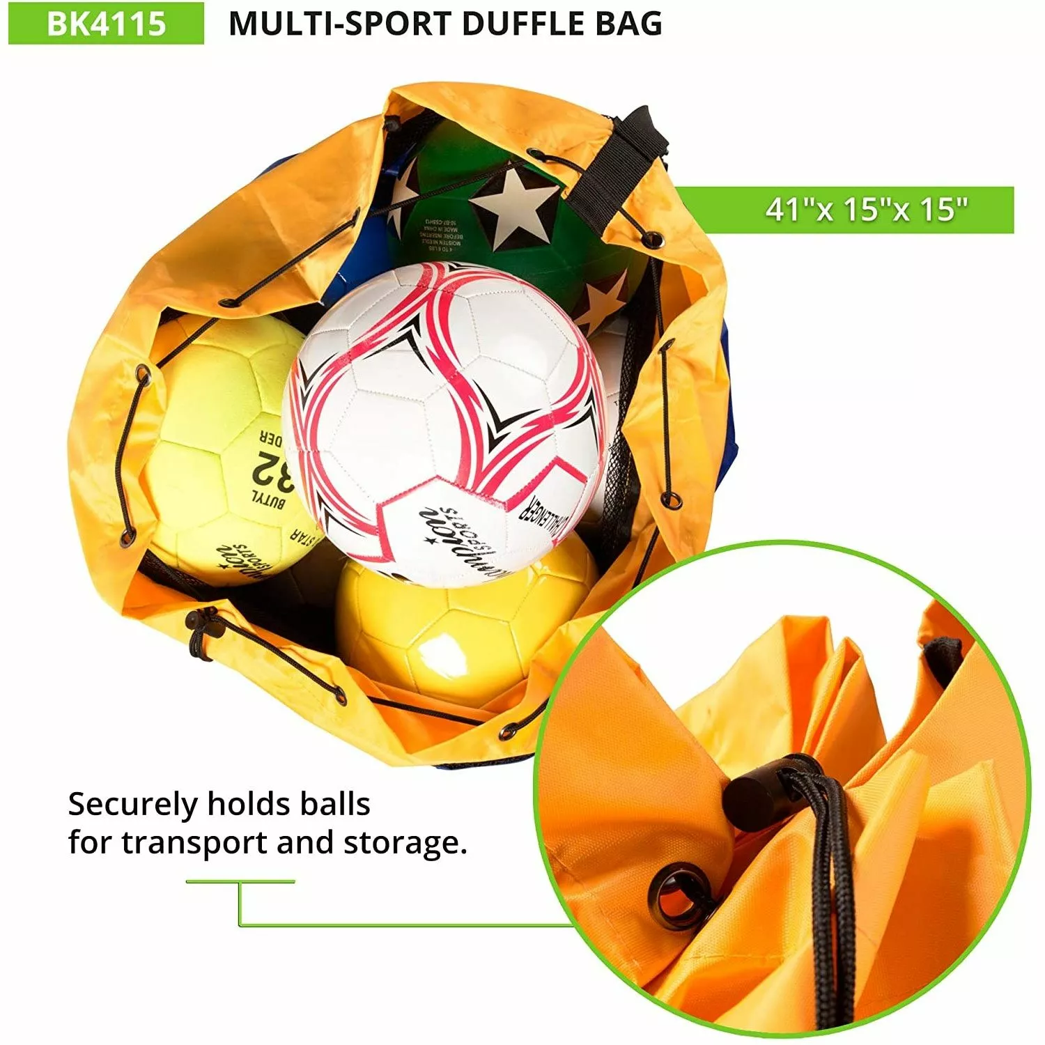 - Holds 10 basketballs or 16 volleyballs or 16 soccer balls or 20 footballs