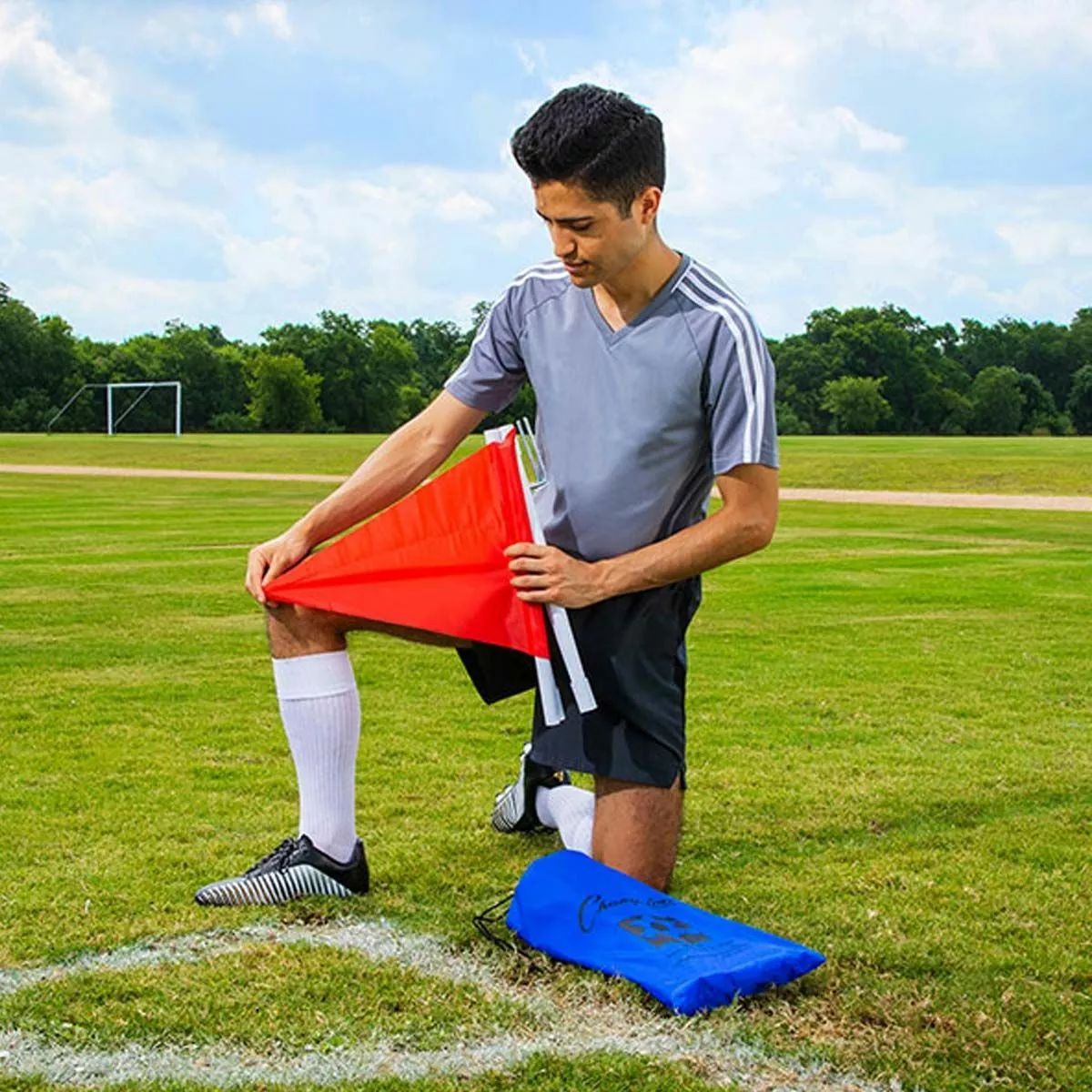 The Champion Sports Fold-A-Flag soccer corner flag system features a set of 4 shock-corded corner flags. The internal shock cord allows the posts to break down in seconds making the dissemble quick and easy. The corner flags are built with sturdy PVC poles that fold quickly and fit in the included carrying pouch. Champion’s Fold-A-Flag corner flags are an excellent choice for those who require portability without compromising quality.