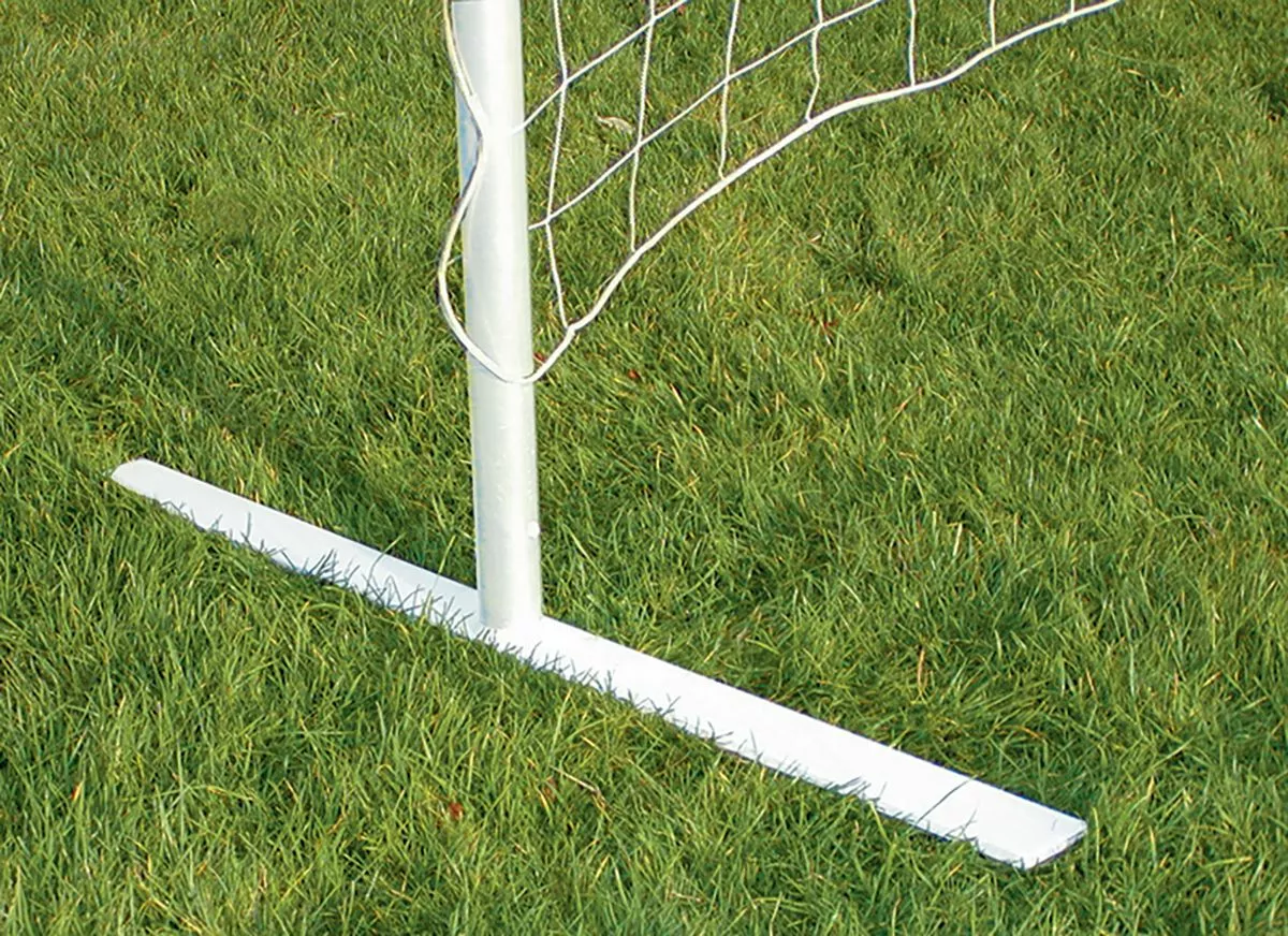 This lightweight, stable training soccer goal is excellent for use in the European style of training. The heavy wall aluminum frame has a white powder coated finish for a great look. The goal sets up in minutes with push button assembly and will withstand the most rigorous practice environment. A ball will rebound somewhat off the net however the goal is not designed to produce a long rebound. The unit includes a 4″ square mesh nylon net and stabilizing ground base plates and costs much less than similar goals from the competition!