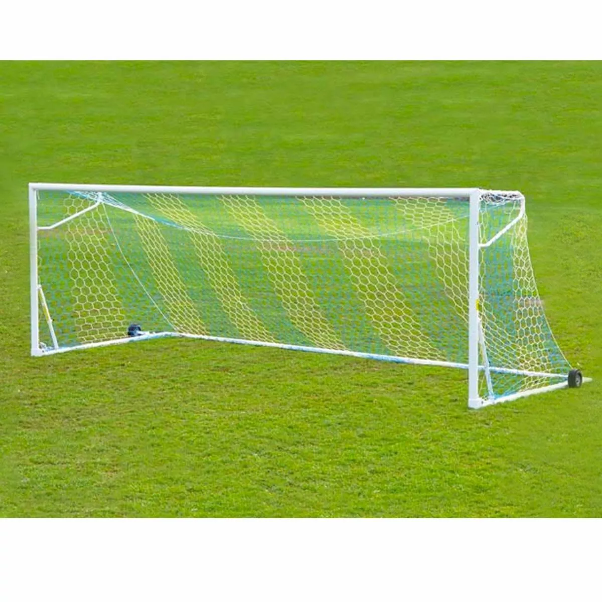 Jaypro two-toned soccer nets have a hexagonal pattern and feature two alternating colors (see inset). Color options include white/blue, white/black and white/red two color soccer nets. 2-toned nets give your field a unique look that will separate you form your competition!
