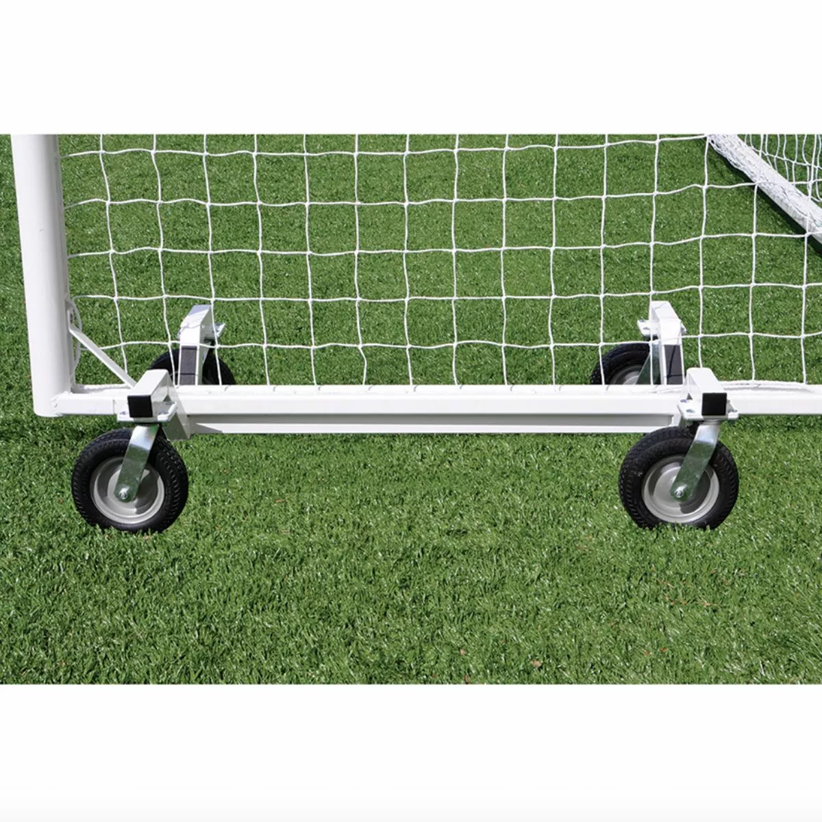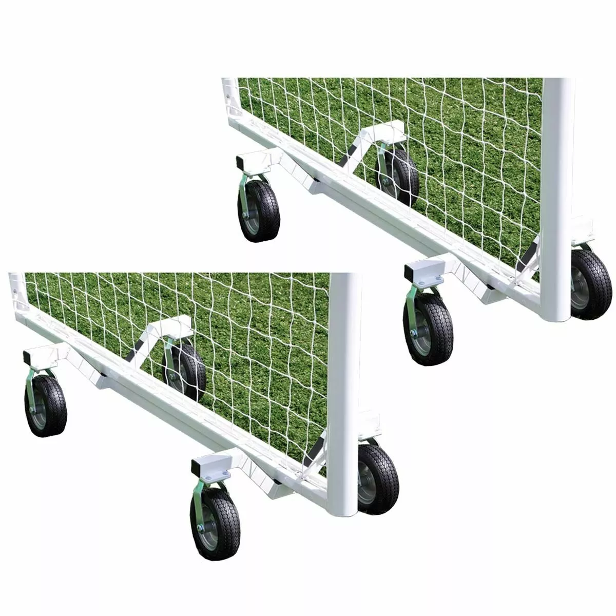 The Jaypro soccer goal swivel wheel carts allow soccer goals to be moved in any direction with ease thanks to its swivel wheel design. Sold as a pair (4 wheels total) this wheel cart set is compatible with any official or club soccer goal. The carts require assembly and are backed by a 3-year manufacturer’s warranty.