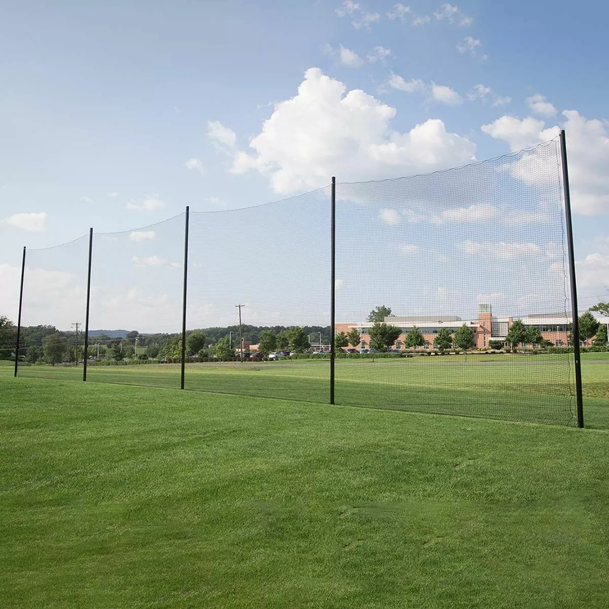 - Includes (5) 4″ round aluminum support poles, (5) ground sleeves with caps, and black multi-sport net