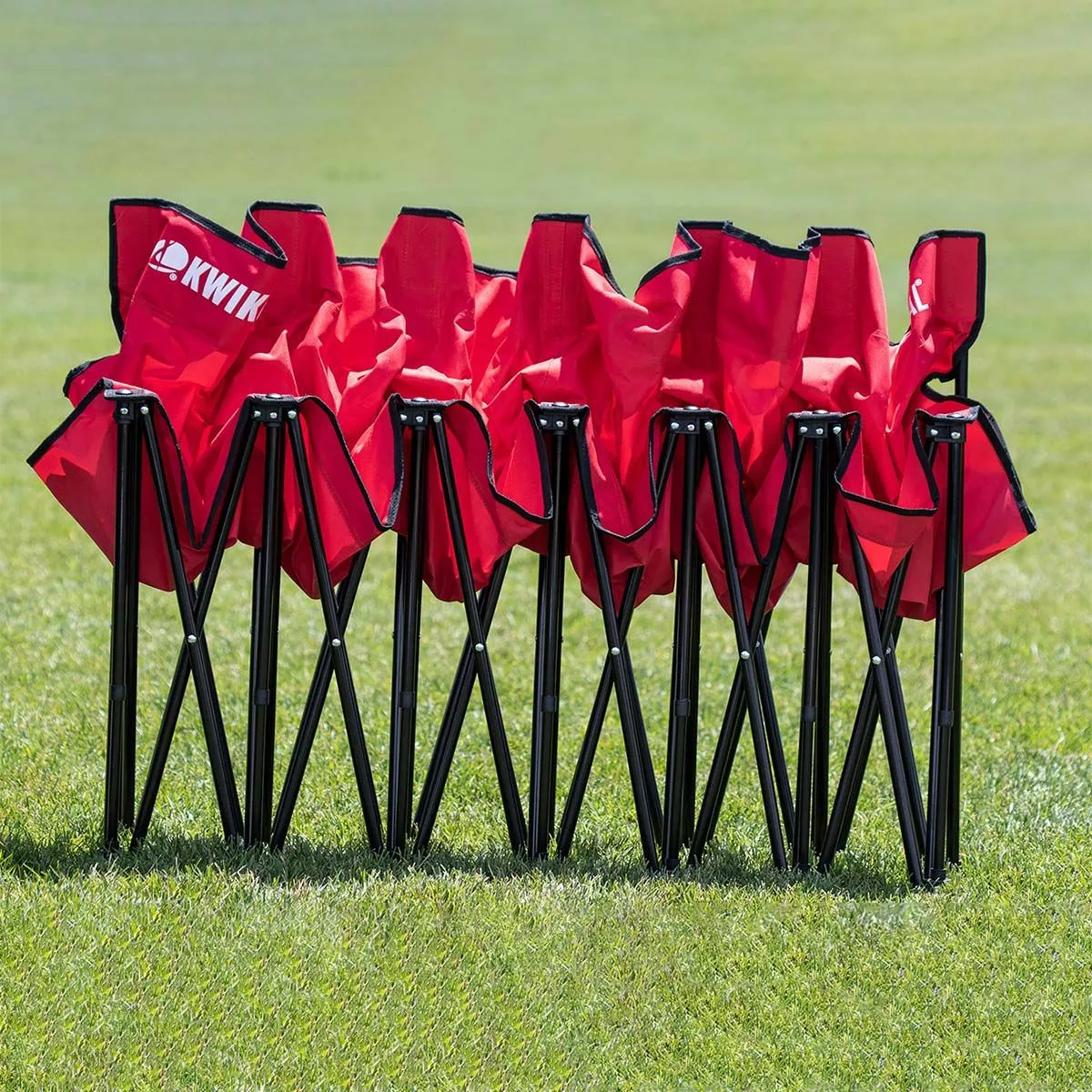 Kwik Goal’s folding soccer bench design includes a seat back for superior comport and seats up to six kids or adults. The Kwik Bench sets up and collapses effortlessly making it the perfect seat for teams and spectators. A carry bag is included making it easy to transport from the car to the field. Includes Kwik Goal’s exclusive lifetime warranty.