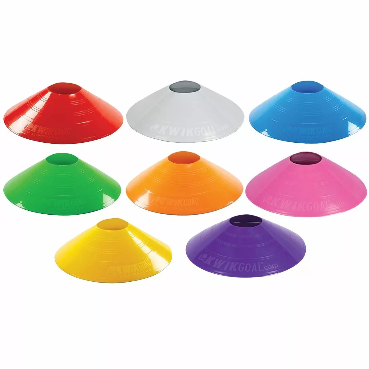 Kwik Goal Small Disc Cones are one of the most popular pieces of training equipment used today. Sold in packs of 25 by color, these small disc cones are ideal for setting up training courses or boundaries, whether you are training indoors or outdoors. Make these small disc cones a mandatory part of your team’s training equipment collection.