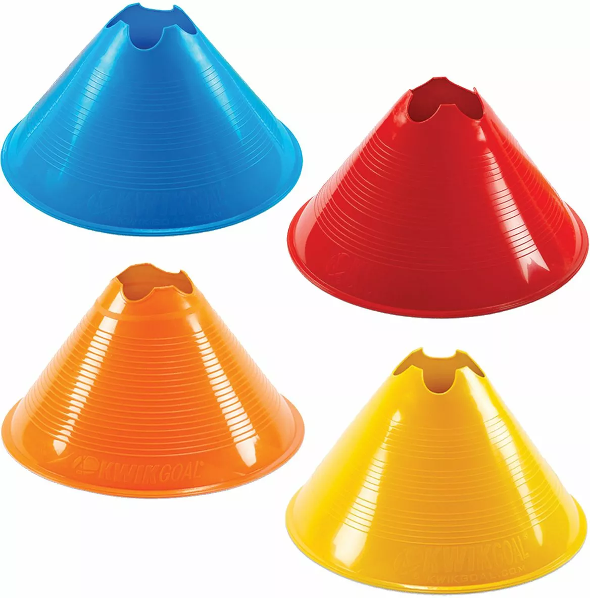 The 4 molded cradles on this Kwik Goal jumbo disc cone create the perfect hurdle when combined with the Kwik Goal Coaching Stick Hurdle Set (NOT INCLUDED)