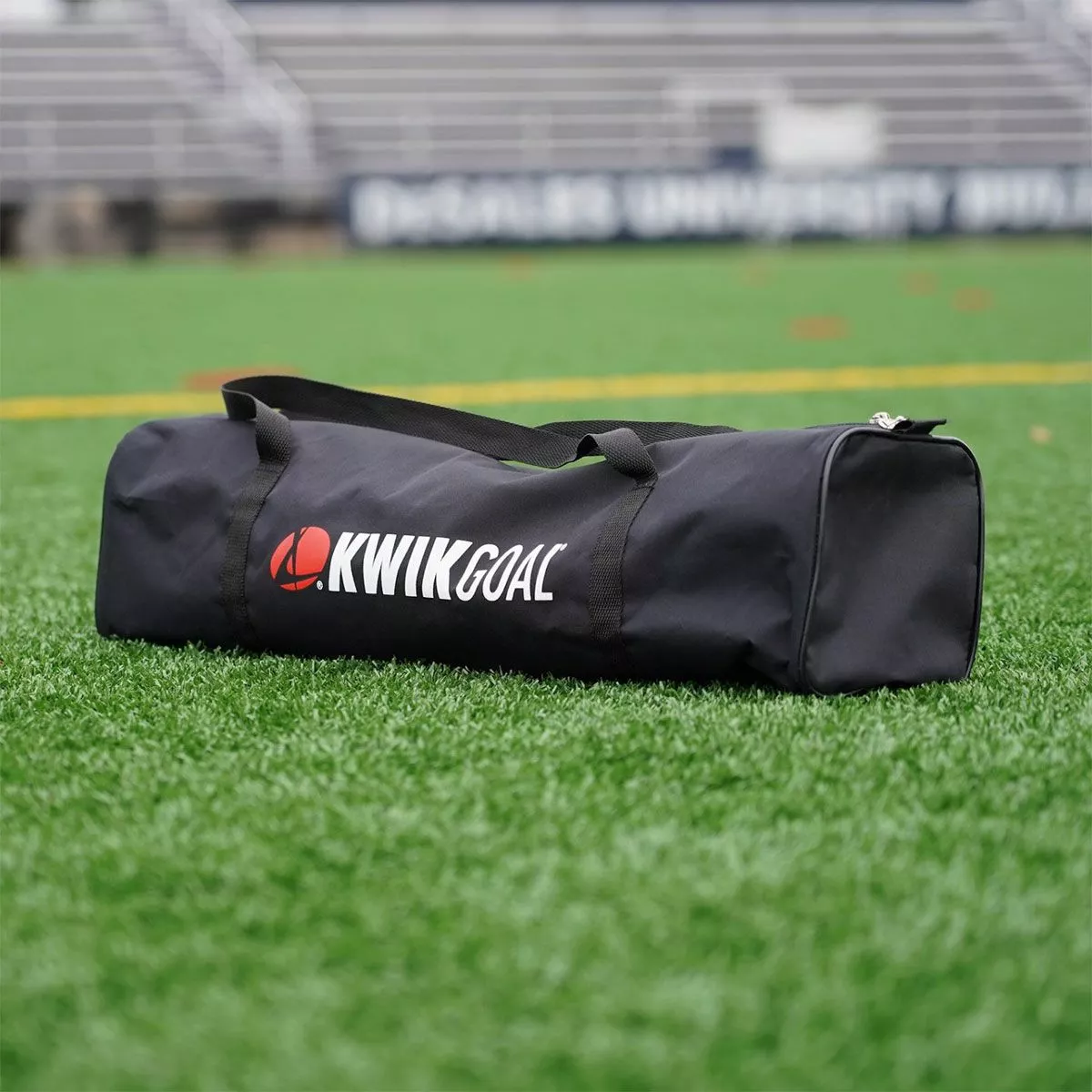 Kwik Goal’s mini soccer tennis net is the perfect tool for practicing first touch skills in a fun game setting. The net can be set up in minutes virtually anywhere, providing 1v1 action on the beach, at the field, or anywhere you may choose to play! This 7″ x 21″ net comes complete with bungee connected poles and a perimeter boundary marker to easily map out your court. When it’s time to pack up, pack away the mini net into the included carrying bag. Make sure your first touch does not let you down and start practicing and competing with Kwik Goal’s mini soccer tennis net!