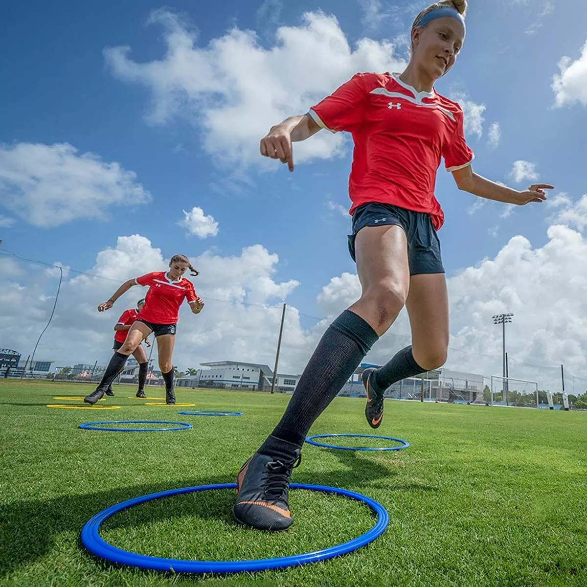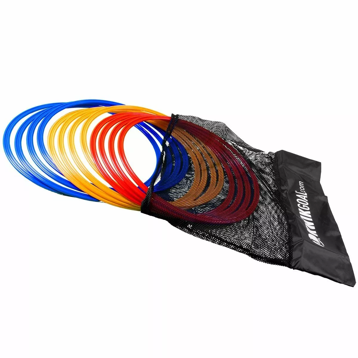 Improve speed & reaction time with Kwik Goal Deluxe Speed Rings. Each set of heavy-duty PVC rings measures 19.5″ in diameter and are 3/4″ wide. The Kwik Goal Deluxe Speed Ring Set can be set up in a variety of formations for different drills and will add speed and cordination to your game.