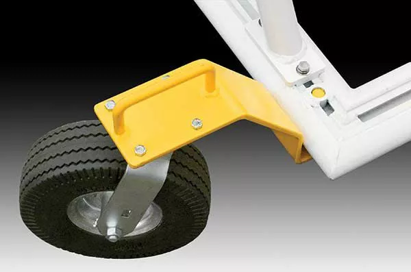 The Kwik Goal 2B3406SW Evolution EVO 2.1 soccer goal features four swivel wheels that make moving the goal extremely safe and easy and allow for precise placement. The Evolution features round front posts and crossbar, all-aluminum construction and the Evolution net system. This goal includes a 3mm/120mm black/white mesh net, a net support strap, Kwik Lock net clips, semi-permanent ground anchors, removable swivel wheels with no-flat tires, and saddle bag anchors. All Kwik Goal soccer goals include a lifetime guarantee.