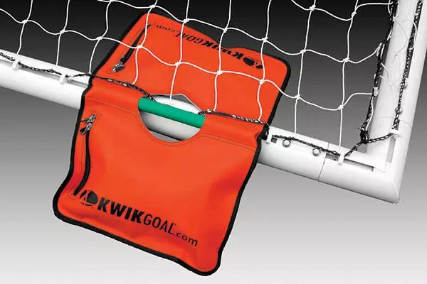 The Kwik Goal heavy duty anchor bags are designed to anchor soccer goals on any surface. Simply add sand to each anchor bag and place them on the base frame of the goal. The key feature of these anchor bags is the space between the handle and the bag, which allows the net to be clipped into the frame of the goal without losing the safety of the bag.
