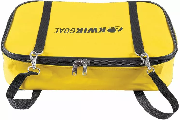 This anchor bag from Kwik Goal is the easiest bag to use on the market today for anchoring soccer goals. Just place a bag of playground sand in the Kwik Fill anchor bag, zip it up and secure it to the bottom bar of your soccer goal. Reinforced PVC ensures a longer life for the anchor. Use these anchors with any size goal and with any brand of goals. It is recommended that a full-sized Kwik Goal soccer goal has 6 anchor bags.