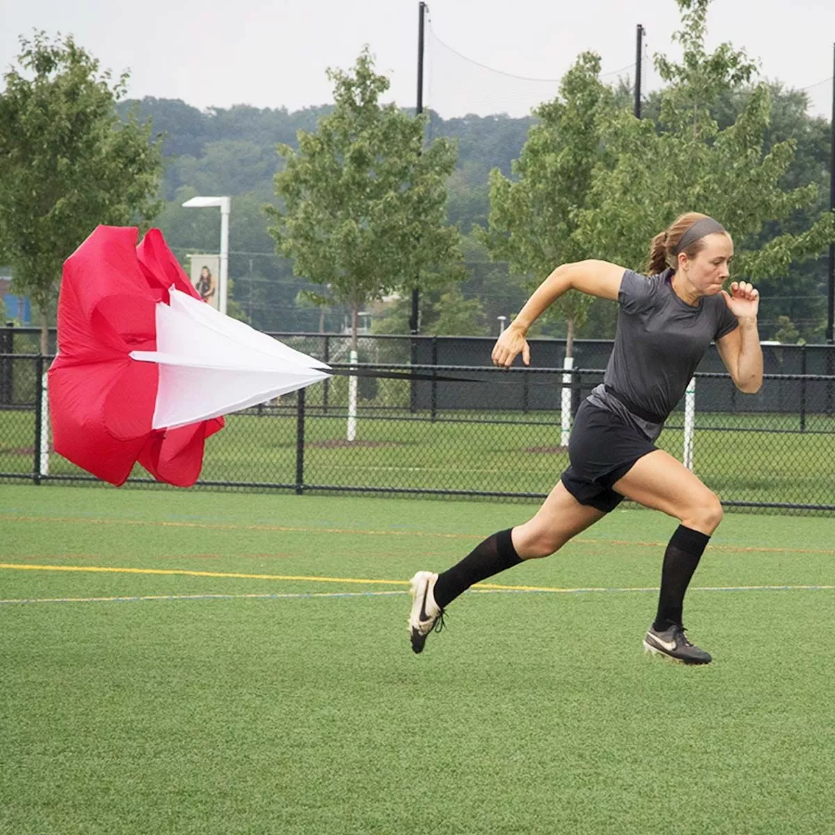 Improve speed & quickness with the Kwik Goal Standard Resistance Chute. The Resistance Chute offers 15 lbs. of resistance and opens as running begins. An easy adjusting harness allows for a comfortable fit for all athletes. 30″ diameter and the connector strap is 36″ long.