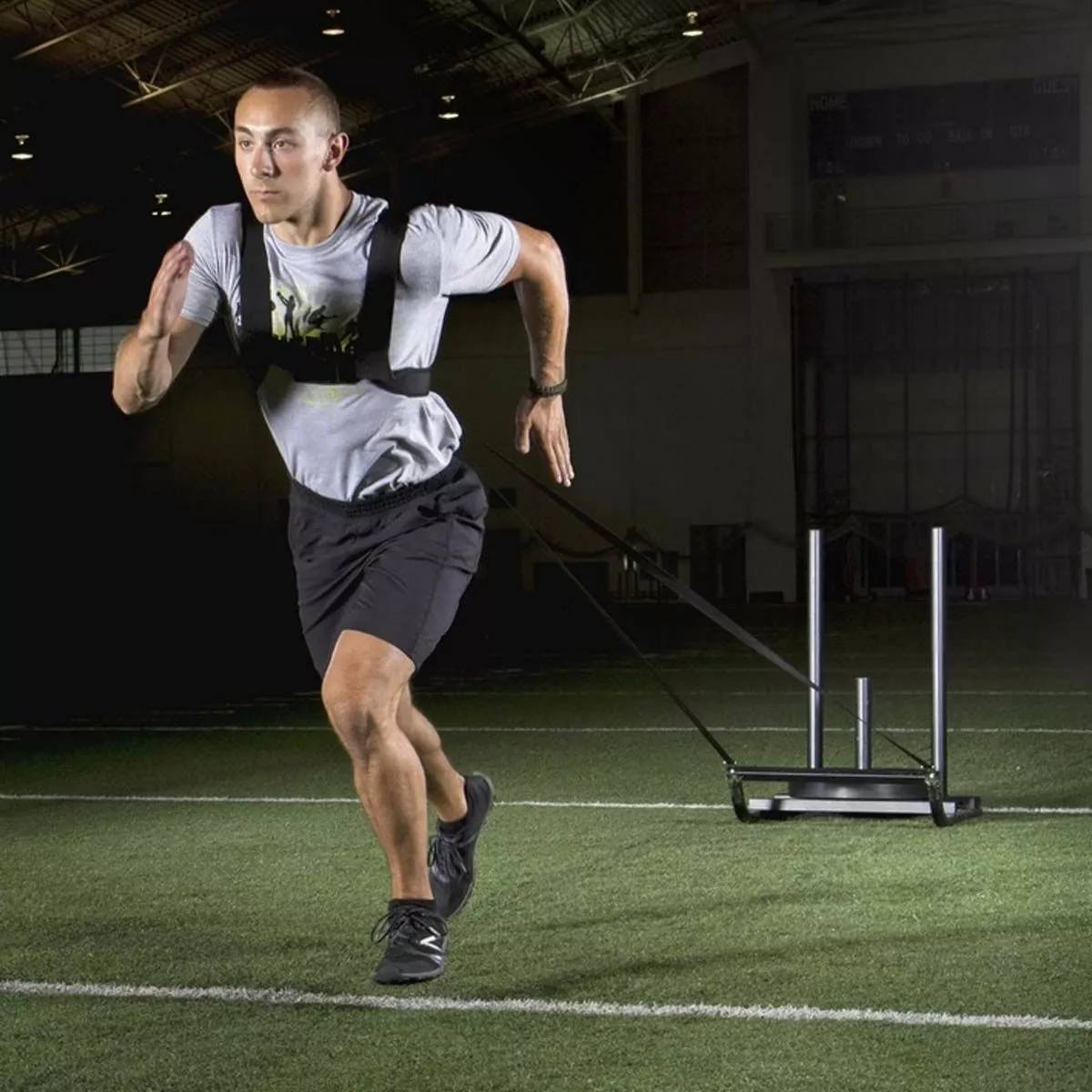 This Power Max push/pull sled allows athletes to push, pull or sprint their way to more speed and power. The versatility and adjustability makes this sled ideal for speed training. Use the quick release pins for fast set-up and break down on a variety of surfaces.
