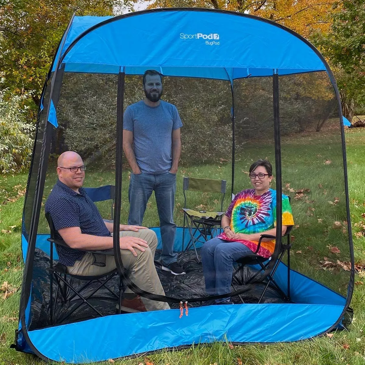 The ScreenRoomPod™ pop up screen tent provides protection from pesky mosquitoes and other insects, allowing you to enjoy the great outdoors in comfort. Stay comfortable under all types of weather with the waterproof roof that keeps you dry from the rain and provides shade from the hot summer sun. The four sides of the pod feature a fine-weave mesh that allows a breeze to flow through, keeping you cool. The ScreenRoomPod™ is roomy enough to comfortably hold up to 4 people sitting and up to 6 people standing. The ScreenRoomPod™ is a versatile pop up tent that can be useful for everything from watching sporting events to keeping children safe from insects. The ScreenRoomPod™ also provides a safe area for people with insect allergies to enjoy outdoor activities. This portable and lightweight insect tent folds easily into the included carry bag. Get yours today and watch every game in total comfort!