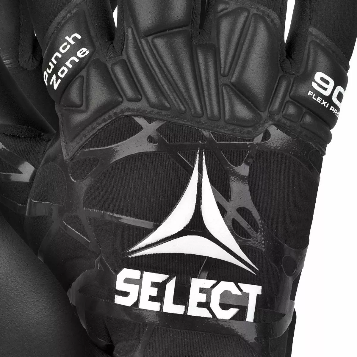 The 90 Flexi Pro V22 goalkeeper gloves from Select are an excellent option for elite goalkeepers. Featuring 3 mm Nova Grip latex, these gloves provide perfect grip in all kinds of weather. The rubber lines along the fingers offer extra stability and impact protection from the hardest shots, while the Punch Zone adds additional comfort as well as increased power and precision. Mesh on the inside of the fingers ensures excellent air circulation to keep you cool during hot days. The Anatomical Fit System provides a correct fit every time, designed according to your hands’ natural grip position. An injection molded spiderweb design makes for a lightweight feeling and adds flexibility when you need it most. The extended grip zone goes all the way to the back of the wrist for additional protection and comfort.