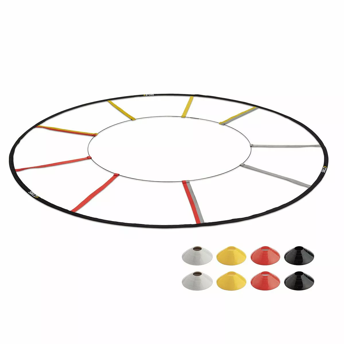 The SKLZ Reactive agility ladder uses color and audible cues to engage the brain and body during training to develop athletic intelligence and improve reaction time and speed through rapid decision making. Utilize the eight colored cones for endless training sequences, including speed gates or marking drills to enhance random response and memory sequencing patterns. The circular shape helps train footwork and agility patterns in all directions for almost any sport or skill level. This training tool includes exclusive online programming and content designed by certified trainers and for even more versatile training, use the Reactive agility ladder with the Switched On training app. When you’re done training, the ladder folds down instantly and can be transported with the included carry bag.