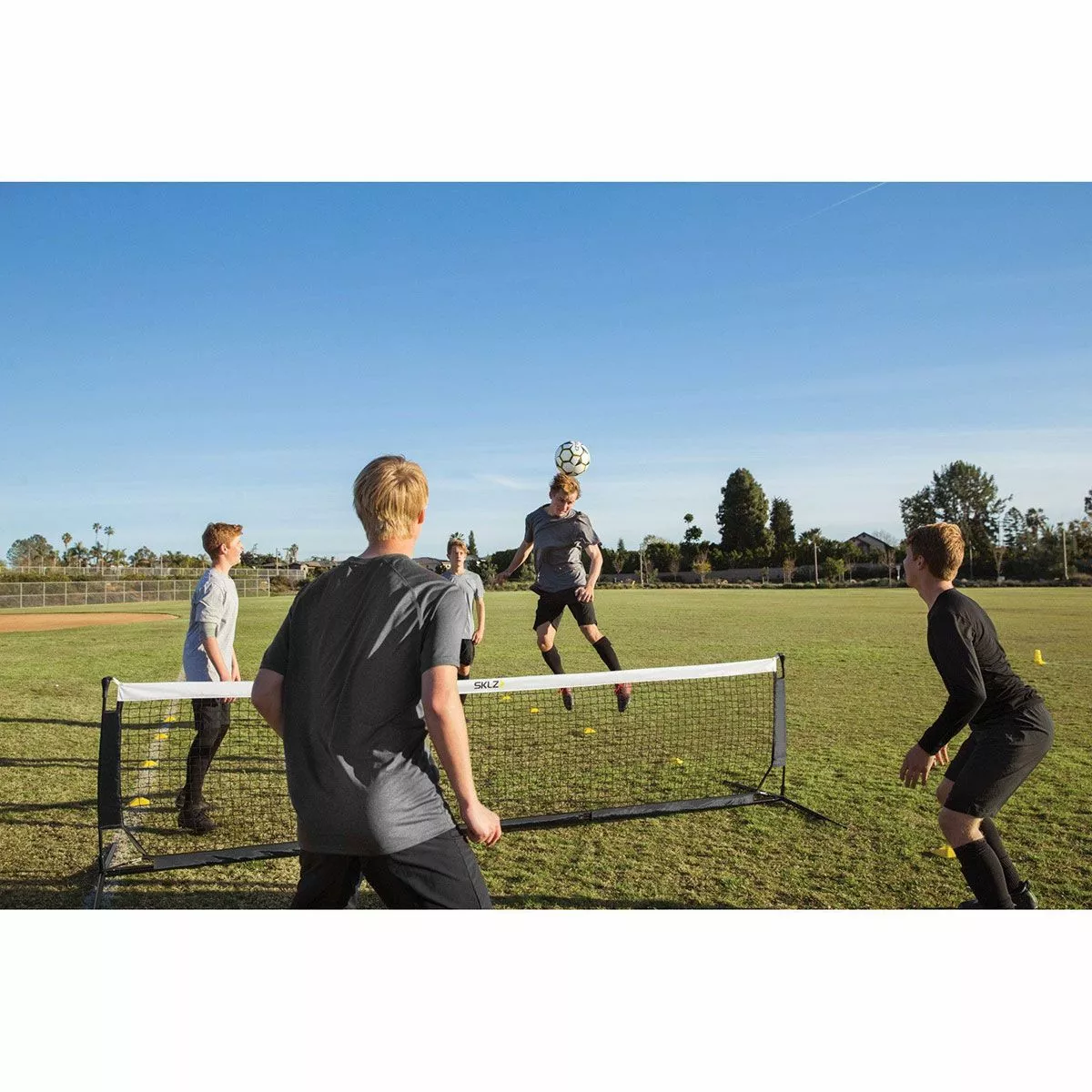 The SKLZ soccer volley net is a fun and competitive training tool for players of all ages. The game of soccer volley pushes players to increase reps and improve ball control and technique, perfect for incorporating into practice or pickup games. This net is 12’ wide and features two height settings – 2’ and 3’—to match all skill levels or add variation to training sessions. Portable and lightweight, this volley net can be used indoors and outdoors and includes a carry bag for easy transport.