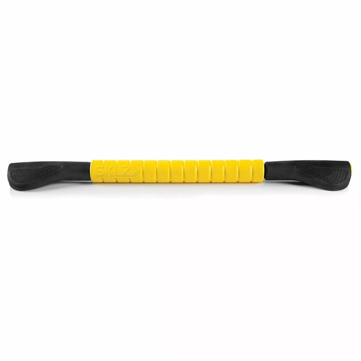 The SKLZ soft tissue rolling massage bar is an indispensable tool for athletes looking to accelerate active recovery following any activity. The mountain biking inspired handles not only provide a comfortable grip, but also distribute pressure evenly providing a controlled roll across tired muscles. The ball-bearing rolling system provides greater massage pressure control with smoother skin contact that reduces pinching and pulling as you roll. Unique grooves in the roller enable a deeper massage. Perfect for myofascial release therapy throughout the entire body, this is a tool you can use to relieve tension after any exercise.