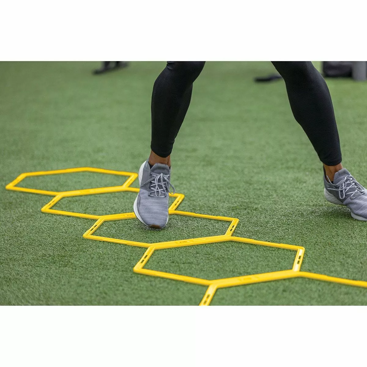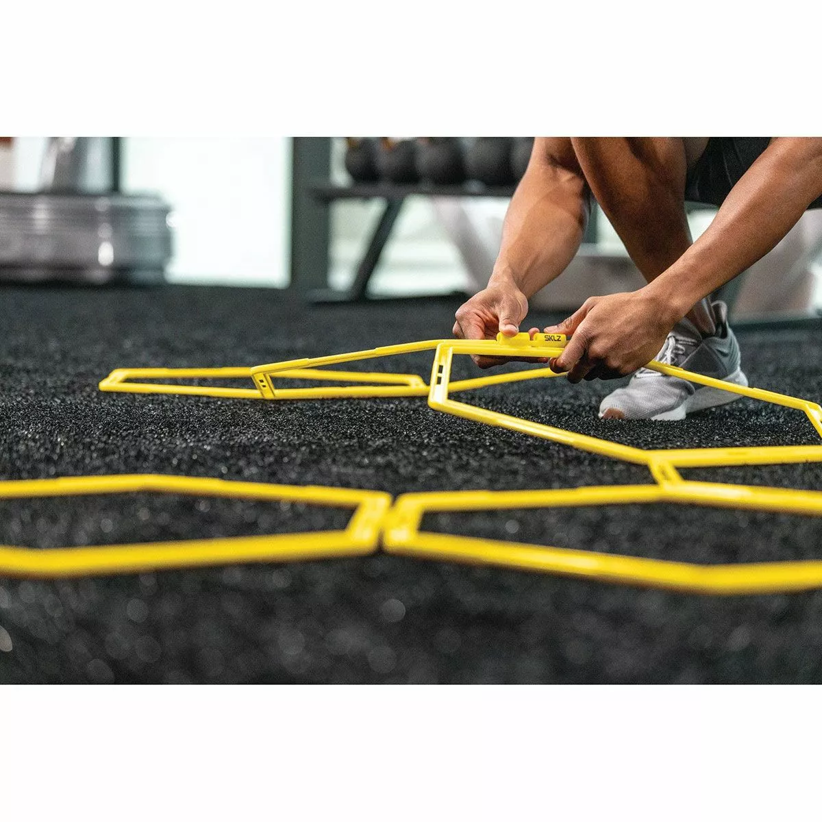 The SKLZ Speed Web agility trainer set was designed to improve footwork, agility, and explosive movements with six customizable hexagonal rings. Configure the web in a variety of speed ladder patterns, or hurdles with easy to connect clips. The hexagons can be separated for individual skill work for various sports and are durable for use on most surfaces, including grass, turf and tracks. When you’re done training, this set is compact enough to fold up and store anywhere.