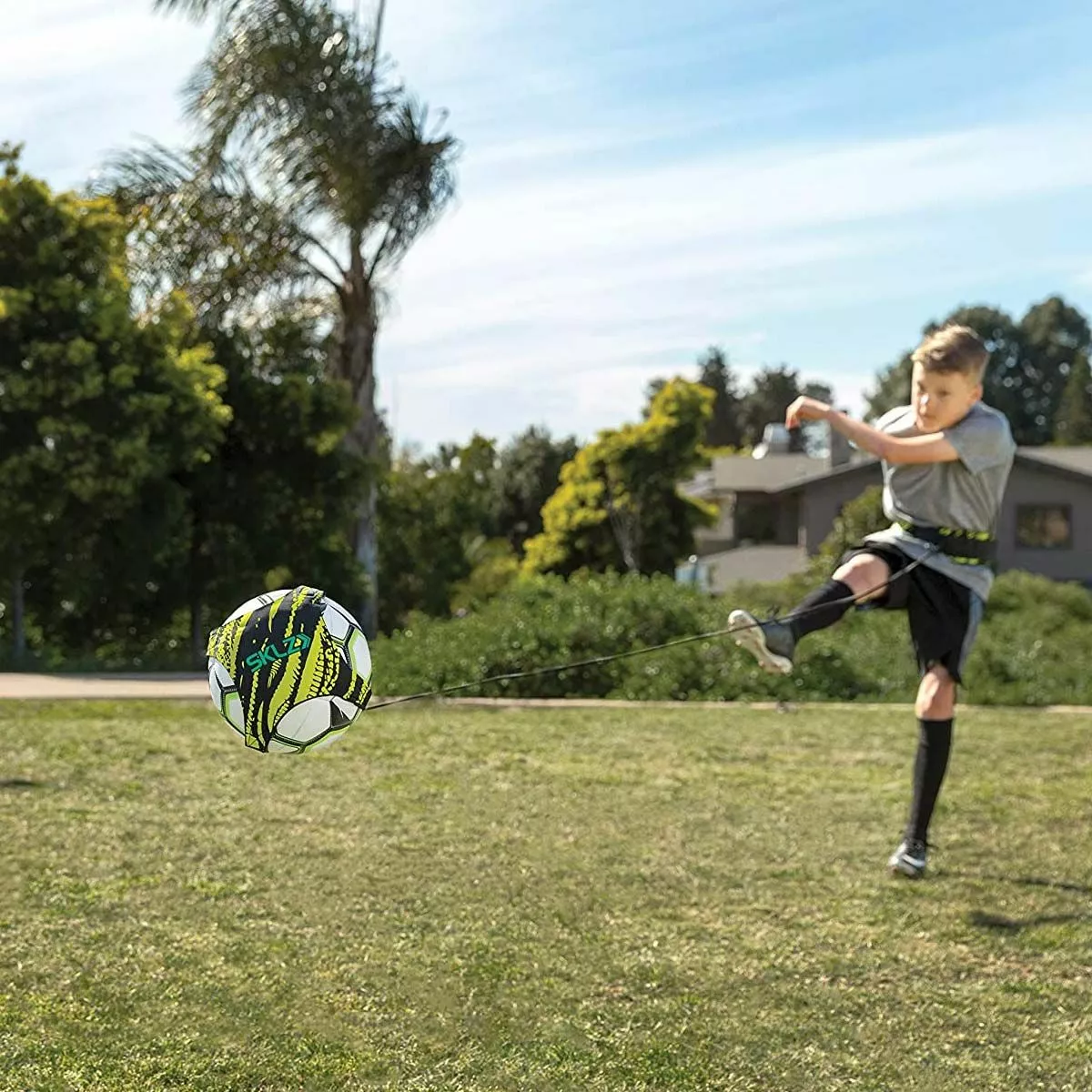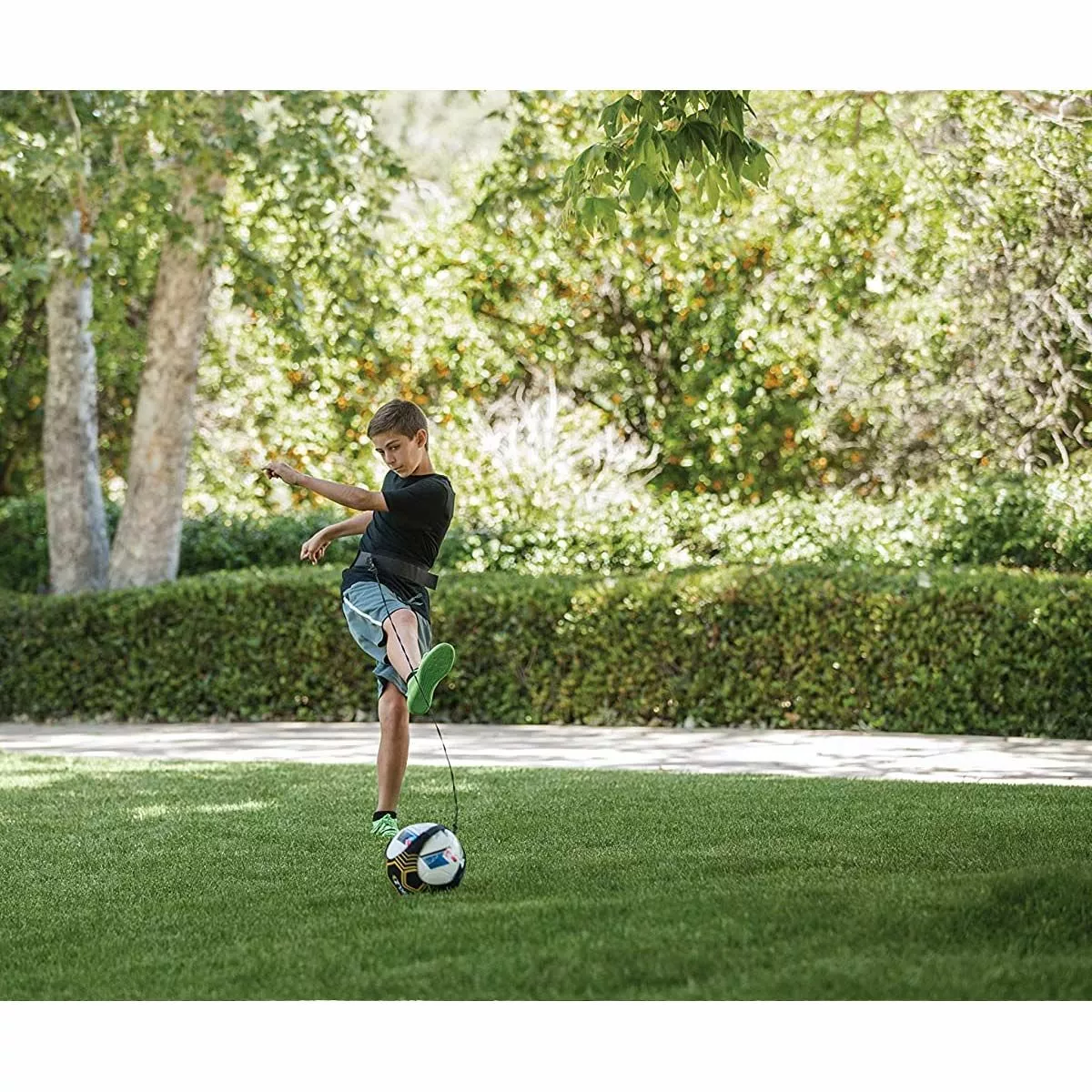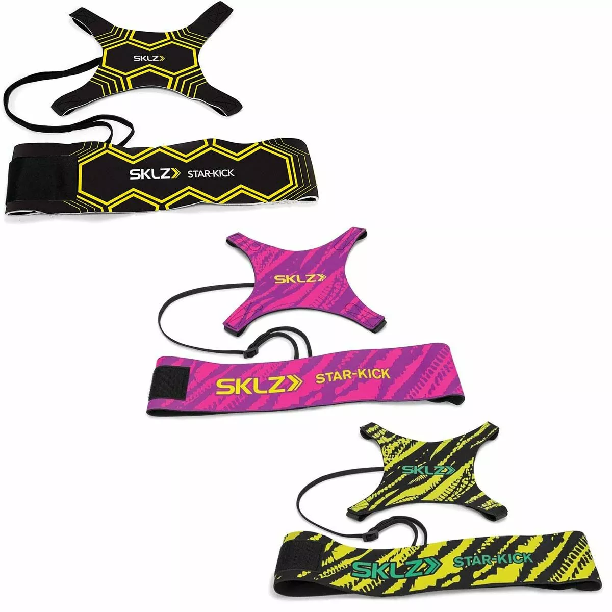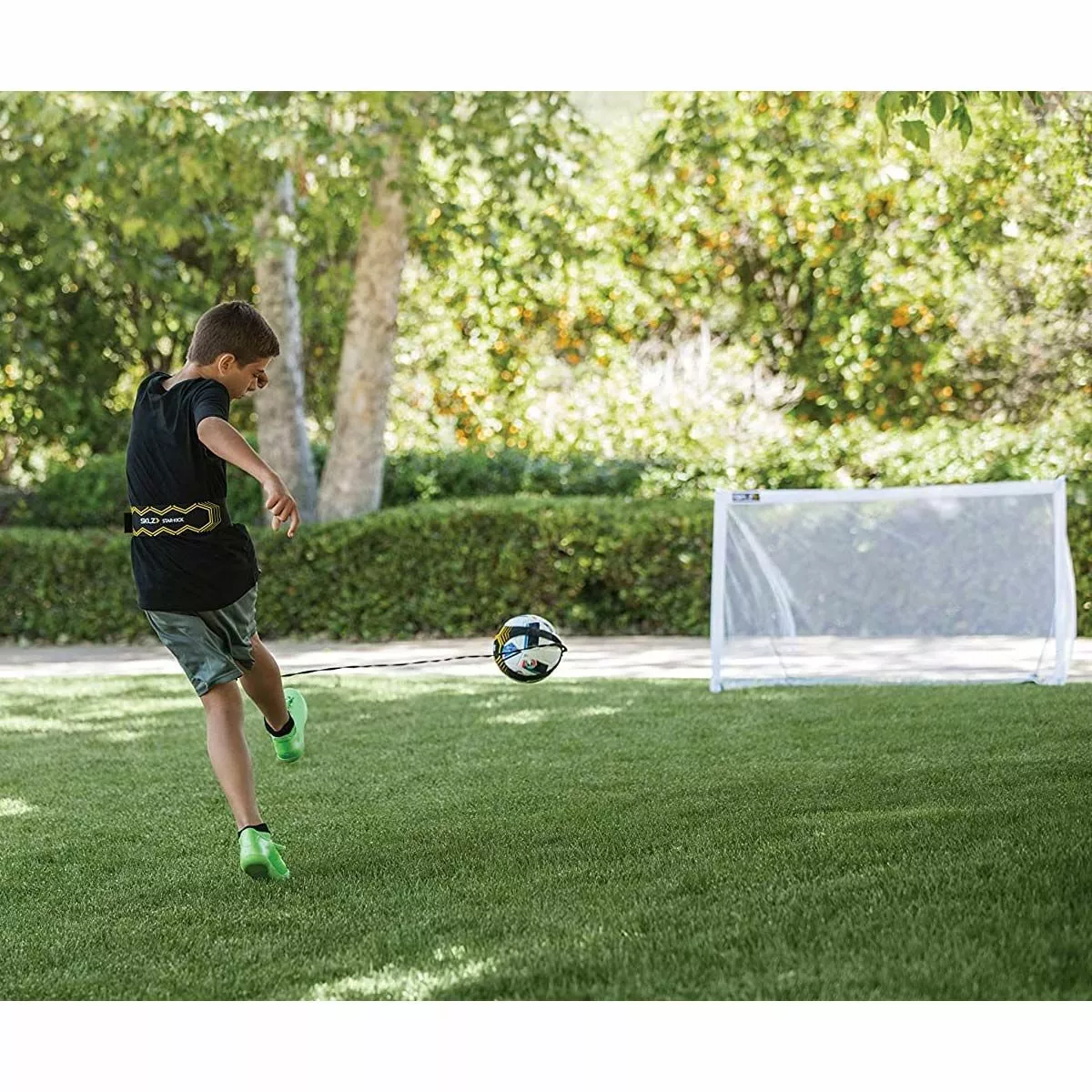 The SKLZ Star-Kick soccer trainer helps young players develop skills like ball control, passing & shooting techniques, and improve ball receiving. This soccer training aid is also effective in improving goalie reflexes and skills like punting. The Star-Kick’s unique design maximizes a player’s training by minimizing the time spent chasing the ball. The Star-Kick features a durable tethered waistband that fits most waist sizes, a high-quality adjustable cord that stretches up to 18 ft (5.5 m), and an adjustable neoprene ball glove that fits ball sizes 3, 4 and 5.