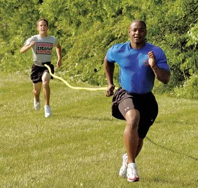 The Speed Harness improves all elements of speed by training stride length and frequency in 2 athletes simultaneously. Stretch the Slastix tubing to the desired tension and have both athletes run in the same direction. The front athlete receives resistance training while the back athlete receives overspeed training. The Speed Harness can also be useful when teaching shape, or drilling for speed on the soccer pitch. The fully sheathed Slastix resistance medium tubing provides a smooth, consistent pull for both athletes while offering maximum safety. Athletes can change direction easily without removing the harness.
