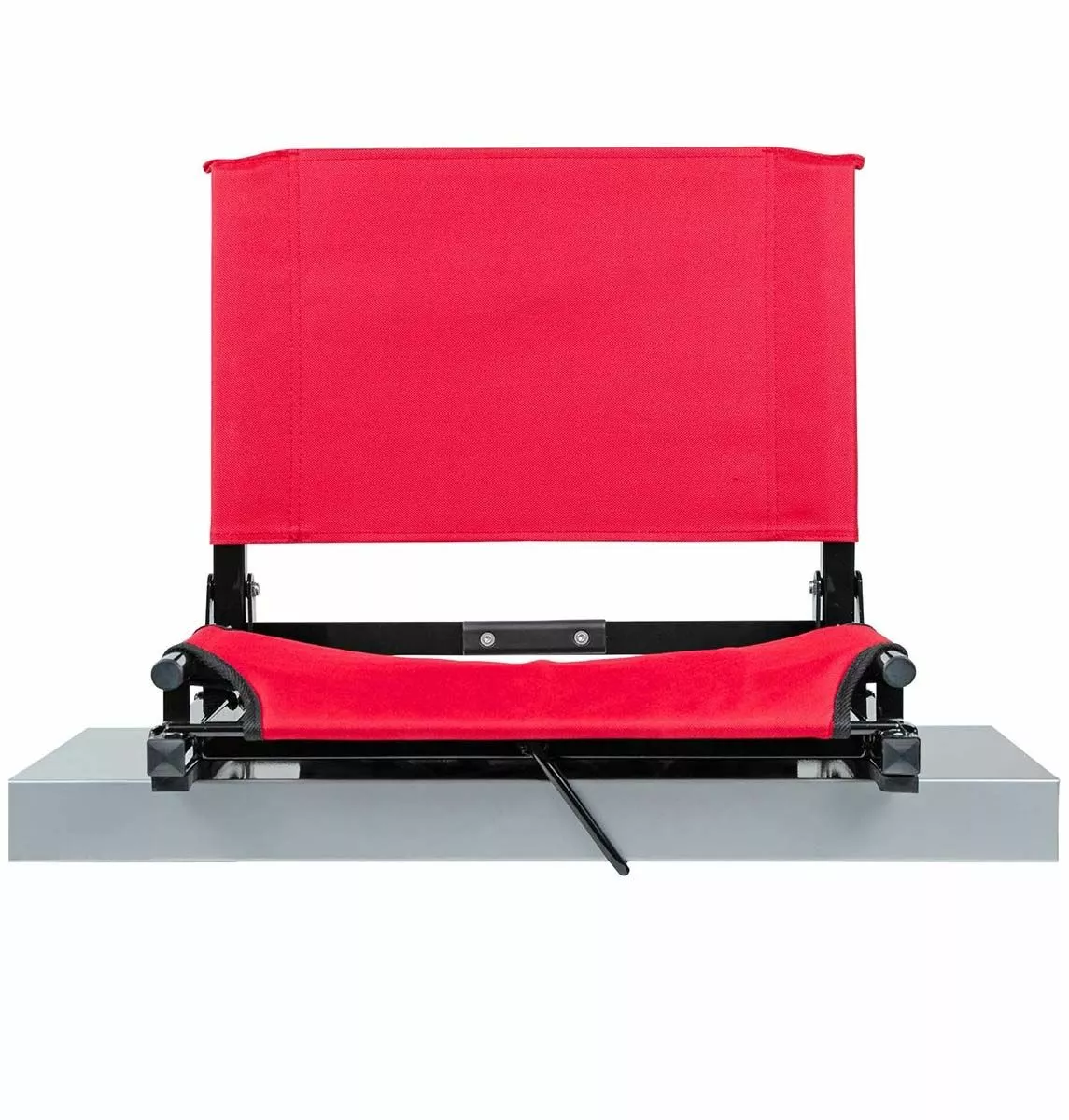 Soften the hardest bleachers and show your school colors with a comfortable stadium seat chair. The Stadium Chair features patented bungee-cord cushioning, a durable steel-frame and tough Cordova canvas which makes it the best seat in the house! The two-piece stitched back is removable for easy screening or embroidery! Raise money for your team with the Stadium Chair – sponsor logos can be imprinted on either side of this folding stadium seat! Artwork can be applied at the factory, call Anthem Sports for details about designing your team’s customized portable stadium seat!