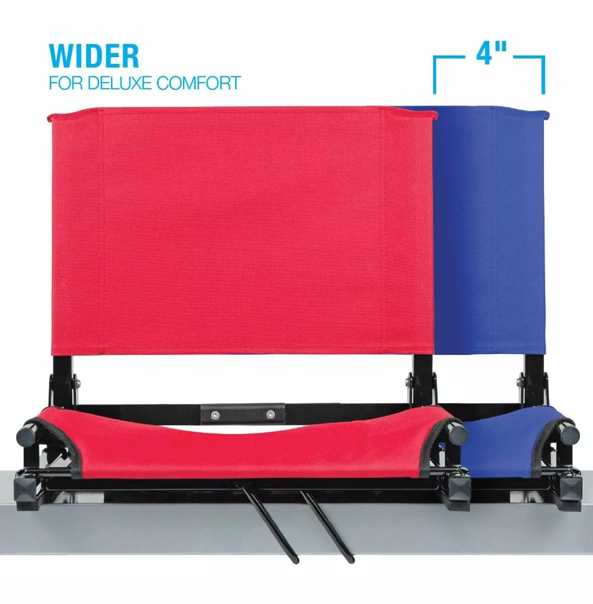 - Hook on bottom secures chair to bleacher