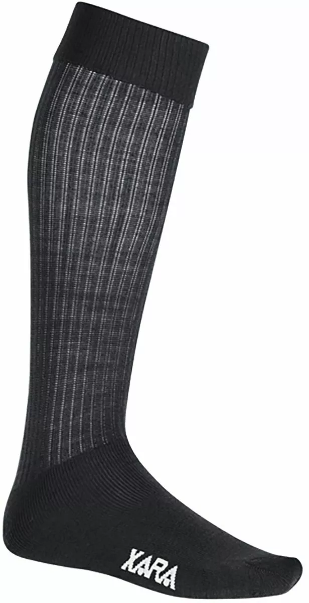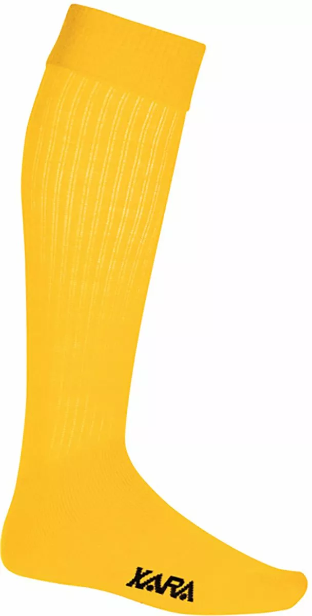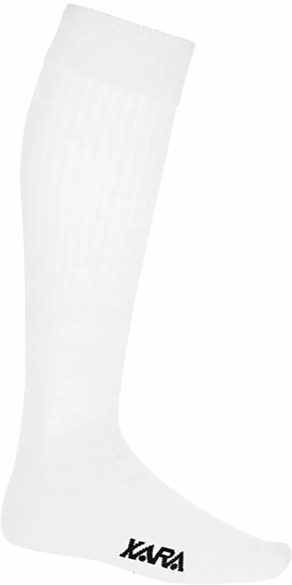 The Xara adult League soccer socks have an acrylic and spandex construction for comfort and durability.